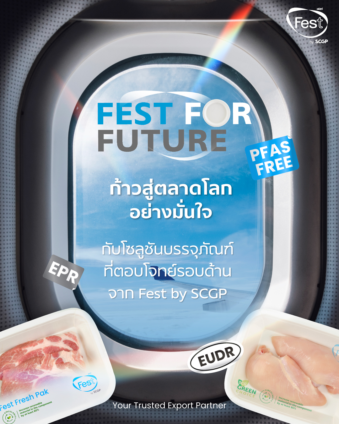 Fest by SCGP โซลูชันบรรจุภัณฑ์เพื่อธุรกิจอาหาร ภายใต้ SCGP ผู้นำด้านบรรจุภัณฑ์ยั่งยืน ที่มุ่งมั่นพัฒนาผลิตภัณฑ์ตามมาตรฐานสากล พร้อมตอบโจทย์ความต้องการของตลาดโลก พร้อมให้ความสำคัญกับความปลอดภัยและสิ่งแวดล้อมในยุคที่ธุรกิจต้องเผชิญกับการเปลี่ยนแปลงทั้งด้านกฎระเบียบและความคาดหวังจากผู้บริโภค Fest พร้อมเป็นพาร์ตเนอร์เชิงกลยุทธ์ ที่ร่วมขับเคลื่อนธุรกิจอาหารไทยให้ก้าวข้ามข้อจำกัดด้านความยั่งยืน และเติบโตได้อย่างแข็งแกร่งบนเวทีโลก